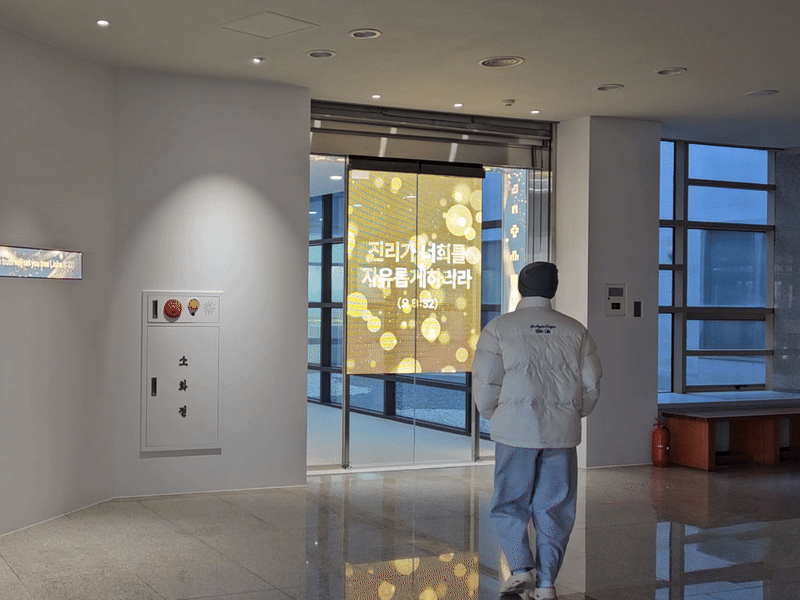 학교 인테리어의 혁신! 남서울대학교 성암기념중앙도서관 투명LED 홀로그램 설치사례