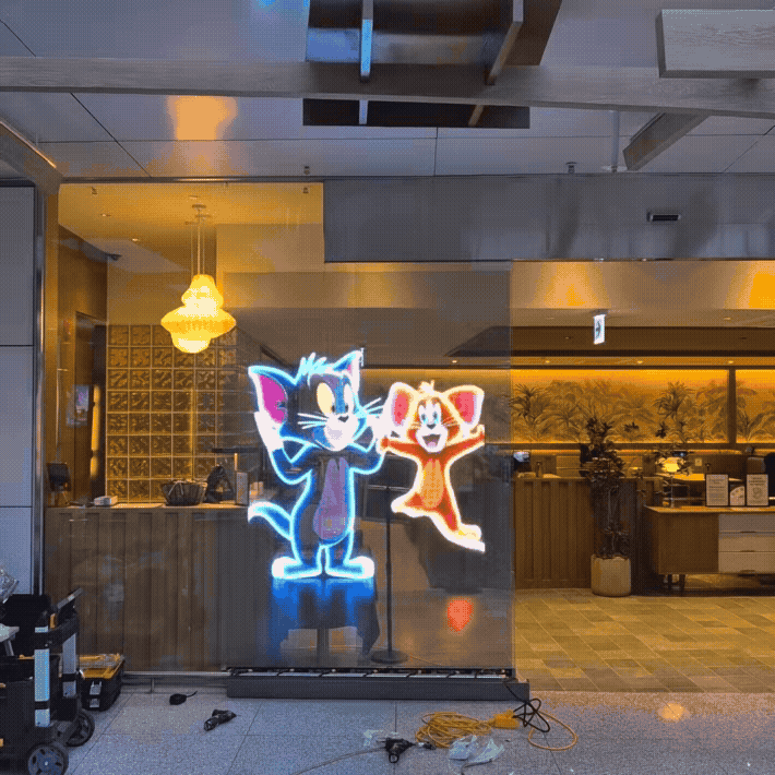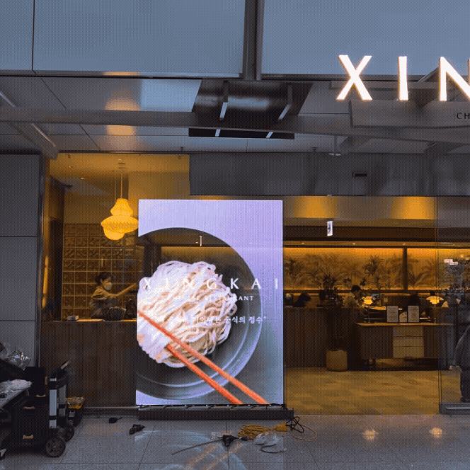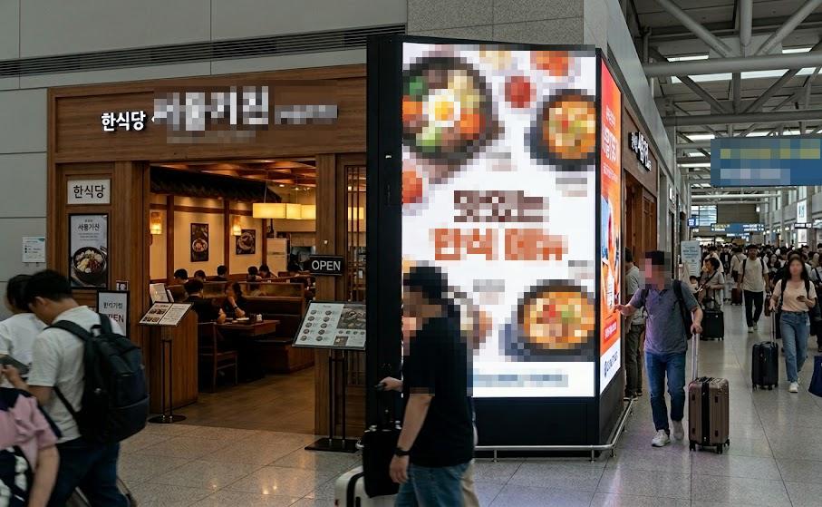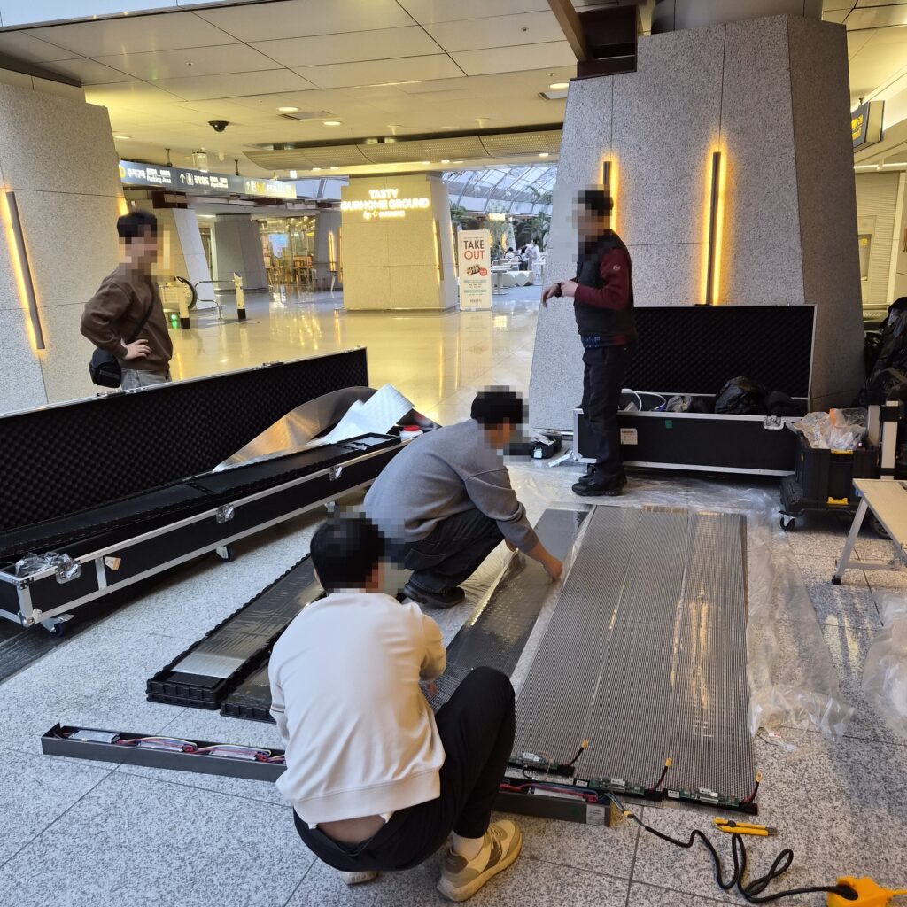 투명LED 시공으로 시선을 한번에! – 인천공항 T1 아워홈 싱카이 매장 미디어 파사드 구축 사례